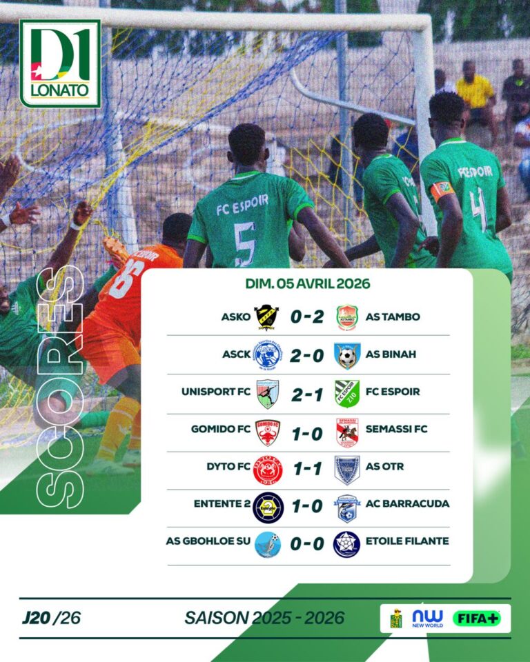 La 20ᵉ journée du championnat de la D1 LONATO marque un tournant majeur dans la saison 2025-2026. Disputée ce dimanche…