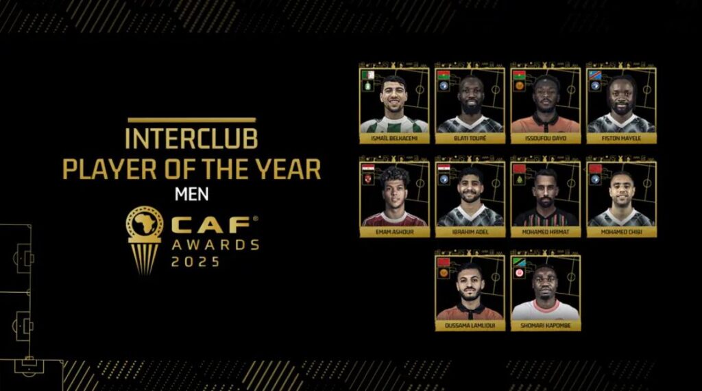 Les nominations sont dominées par les joueurs du Pyramids FC et du RS Berkane. L’Algérien Ismael Belkacemi (USM Alger) et le Burkinabé Blati Touré (Pyramids FC) figurent en tête de liste, aux côtés d’Oussama Lamlioui (RS Berkane), Issoufou Dayo (RS Berkane) et Emam Ashour (Al Ahly). Les nominations reflètent les performances exceptionnelles du Pyramids et du Berkane lors de la Ligue des champions de la CAF TotalEnergies et de la Coupe de la Confédération.