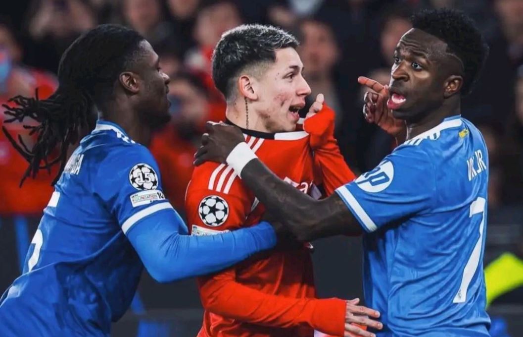 Vinicius a indiqué à l’arbitre François Letexier avoir été victime d’insultes à caractère raciste de la part de l’ailier argentin lors du match aller des barrages à élimination directe de la Ligue des champions, disputé mardi dernier à Lisbonne.